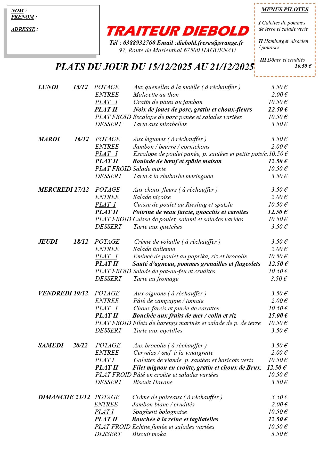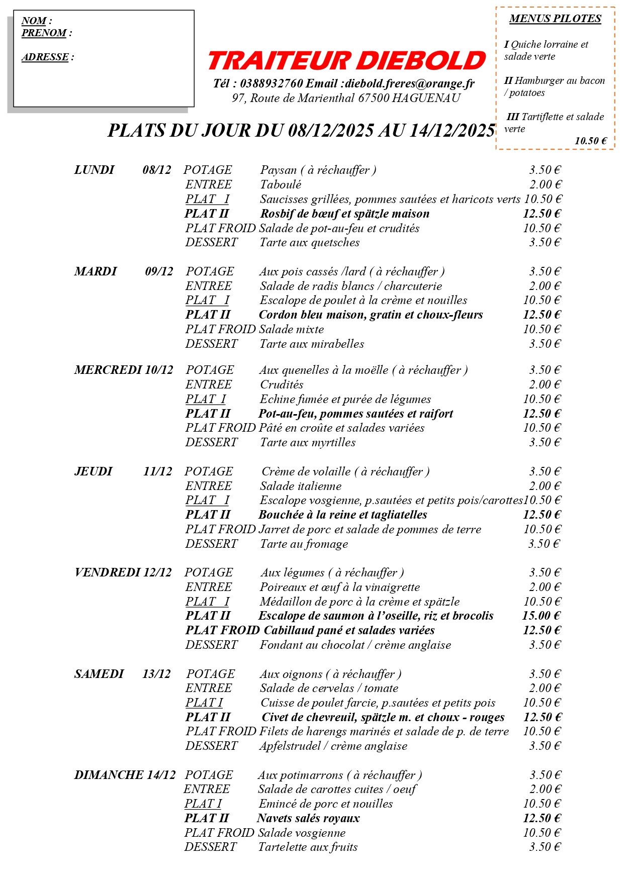 Menu de la semaine